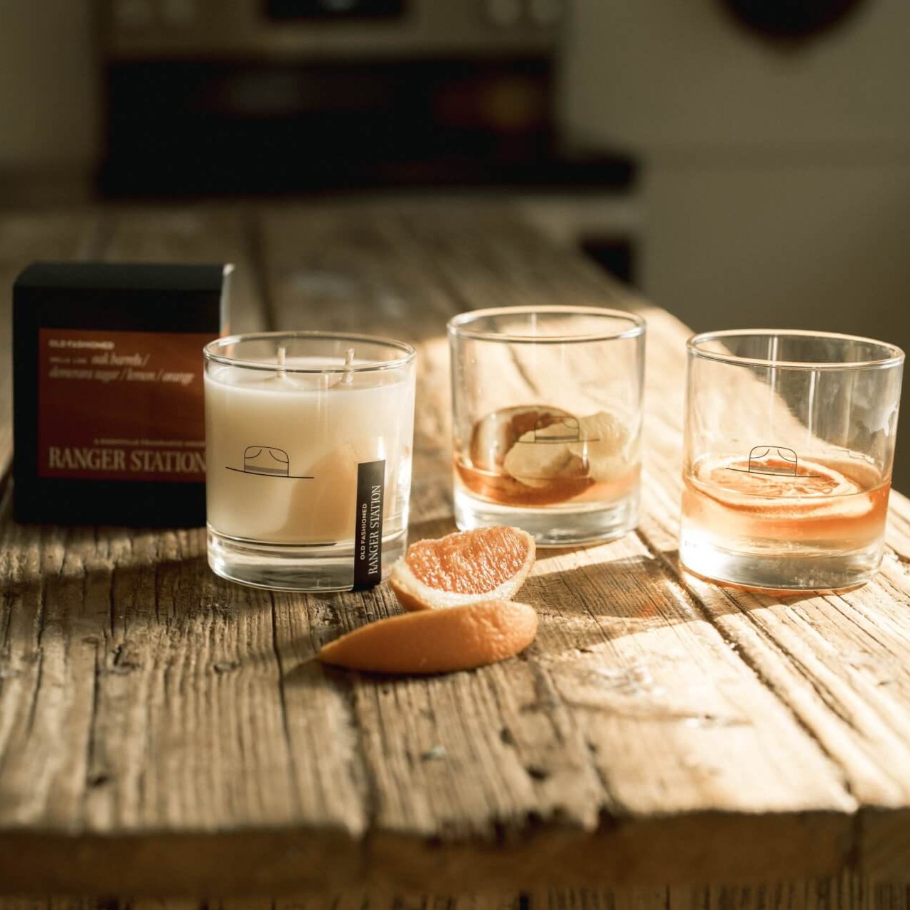 The trademark feature of each Ranger Station candle is that it converts into a keepsake collector cocktail glass when you're done burning it. Each arrives beautifully-packaged in a box with a set of Ranger Station matches and a foldout artisan cocktail recipe card.