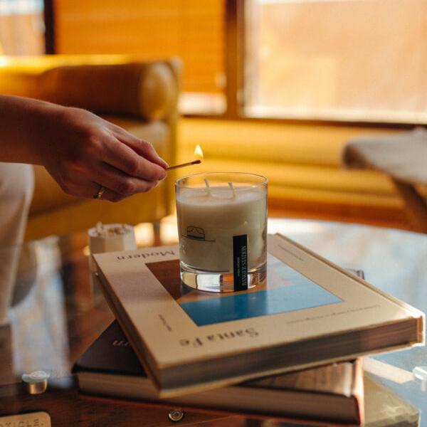 By 2015, they were dating and pursuing respective careers in music and fashion when Steve hand-poured his first candle in a spare cocktail glass in the garage of a refurbished park ranger station he + his bandmates were renting outside of Nash.